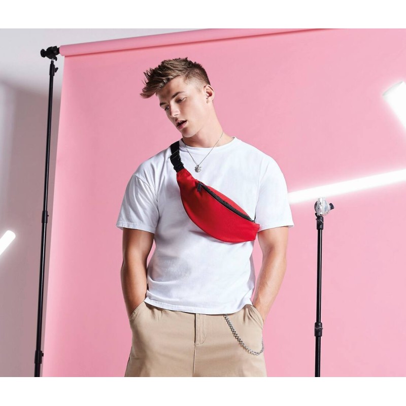 Polyester 600D | Ceinture tissée réglable avec clip sécurisée | Grand compartiment principale | Poche arrière zippée | Capacité : 2,5 litres | Livraison sans contenu/décoration