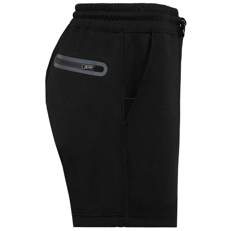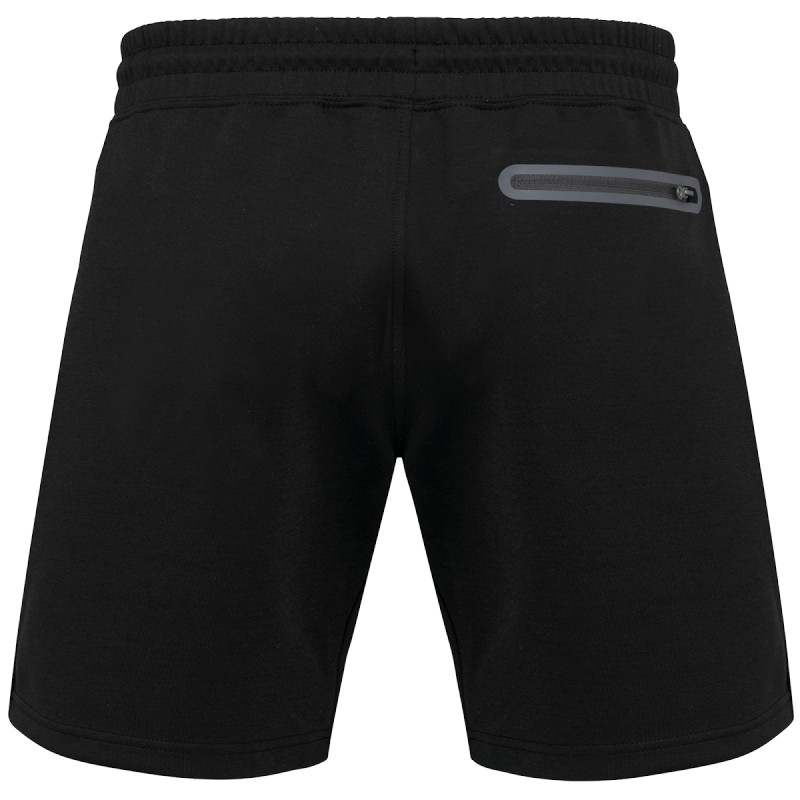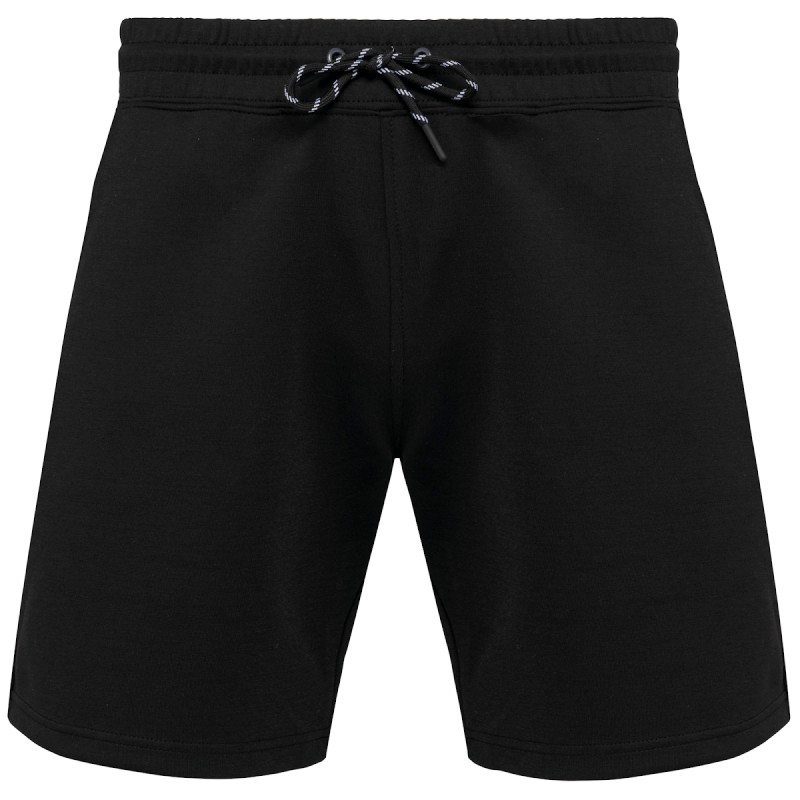 Coloris unis:  94% polyester/ 6% élasthanne. Coloris chinés :  79% polyester/ 15% viscose/ 6% élasthanne. Matière ultra confortable. Ceinture élastiquée avec cordon de serrage bicolore finition embout plastique et œillets métalliques. 2 poches devant doublées jersey et 1 poche arrière zippée, finition thermosoudée contrastée. Finition poches avec une partie élastiquée contrastée Black sur tous les coloris et Dark Grey sur le Black et Ash Heather. Finition double aiguille sur bas de vêtement. Etiquette de marque Tear-away.