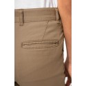 98% coton / 2% élasthanne. Lavé aux enzymes. Ceinture avec passants. Braguette avec bouton et zip en métal. Deux poches devant avec surpiqûre. Deux poches passepoilées au dos avec piqûre nervure. Ceinture intérieure élastiquée et ajustable. Bride intérieure en chevrons ton sur ton. Surpiqûres entrejambe, fourche devant et dos pour plus de renfort. Finition bas de jambe simple surpiqûre. Pas d'étiquette de marque, uniquement une puce de taille déchirable pour faciliter la personnalisation.
