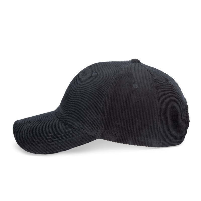 100% coton biologique. Tissu en velours côtelé. 6 panneaux. Patte ajustable en matière principale et boucle de serrage en métal recyclé. Visière avec surpiqûres. Biais finition intérieure. Panneau devant avec renfort