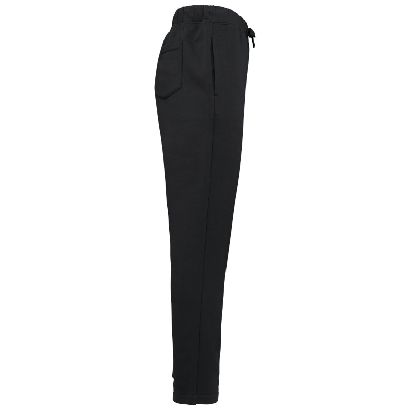 85% coton biologique / 15% polyester recyclé post-consumer. Coton peigné. Coupe décontractée. Lavé aux enzymes. Molleton gratté 3 fils LSF (Low Shrinkage Fleece : molleton pré-rétréci). Ceinture élastiquée. Cordon de serrage plat avec finition piqûre nervure. Œillets brodés. Poches côtés et poche plaquée dos côté droit au porté. Finition bas de jambes avec ourlet simple surpiqûre.