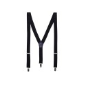 Bretelles en Y dans le dos, tissu élastique extensible pour le confort et le style. Bretelle de 3 cm de large. Deux clips métalliques anti-glissement sur l'avant pour se fixer au pantalon. Un clip dans le dos. Boucles autobloquantes métalliques pour l'ajustage, ce qui en fait un article à taille unique.