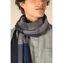 100% viscose. Chèche tissé avec franges. Tissu double face réversible : une face à petits carreaux contrastés, l’autre ornée d’un quadrillage plus large dans des tons de beige, bleu et gris. Tissés artisanalement, nos chèches peuvent présenter de légères variations de couleur d’une pièce à l’autre, signe d’un savoir-faire authentique.