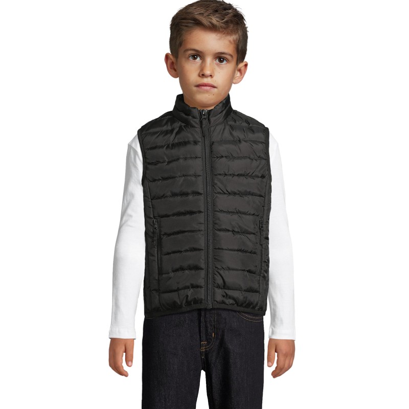 DOUDOUNE LIGHT SANS MANCHES ENFANTOuverture principale et poches côté avec zip nylon ton sur ton