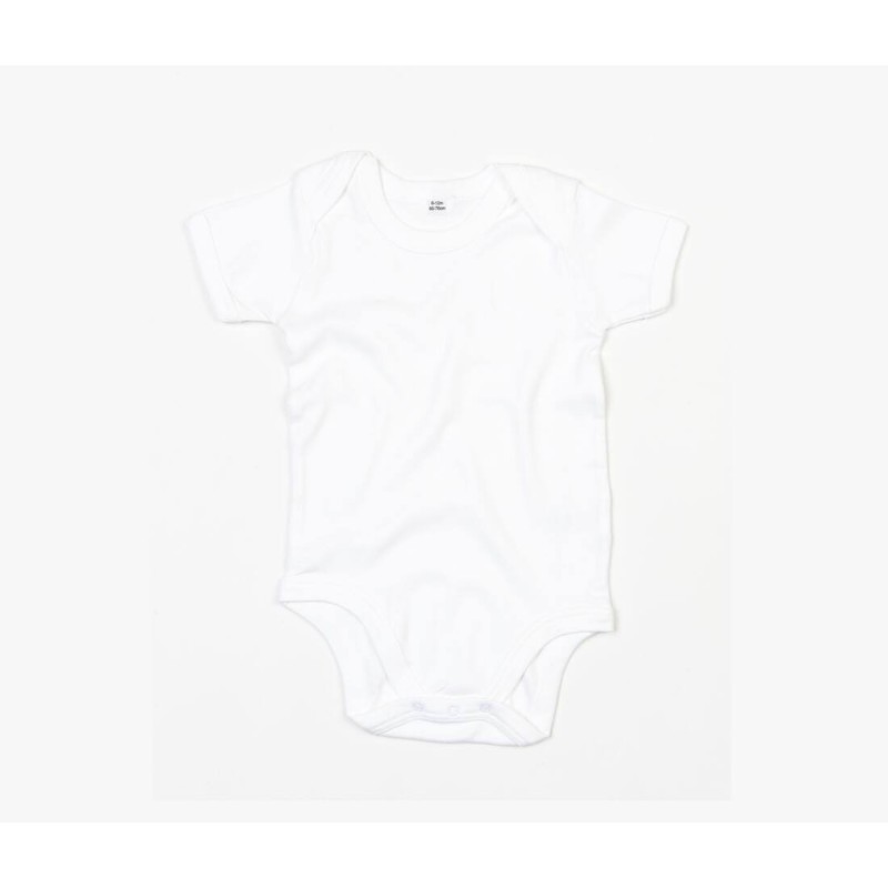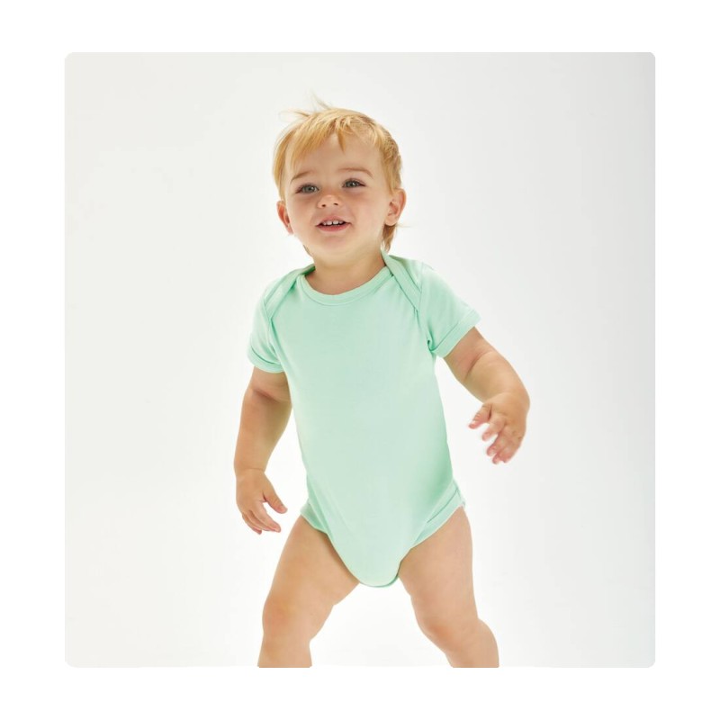 Encolure ronde. Biais au col et manches. Boutons pression sans nickel à l'entrejambe.