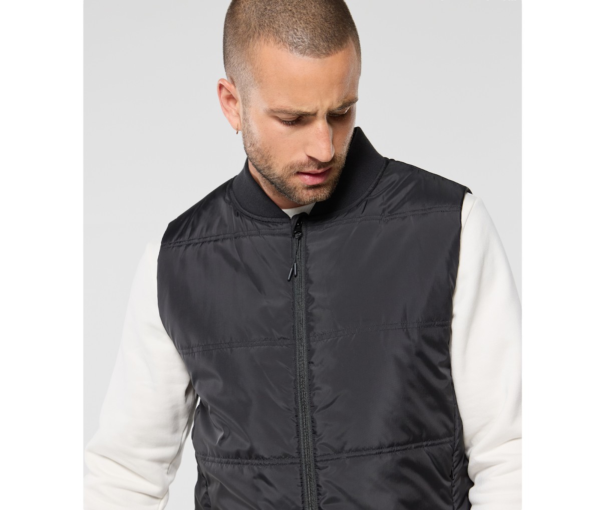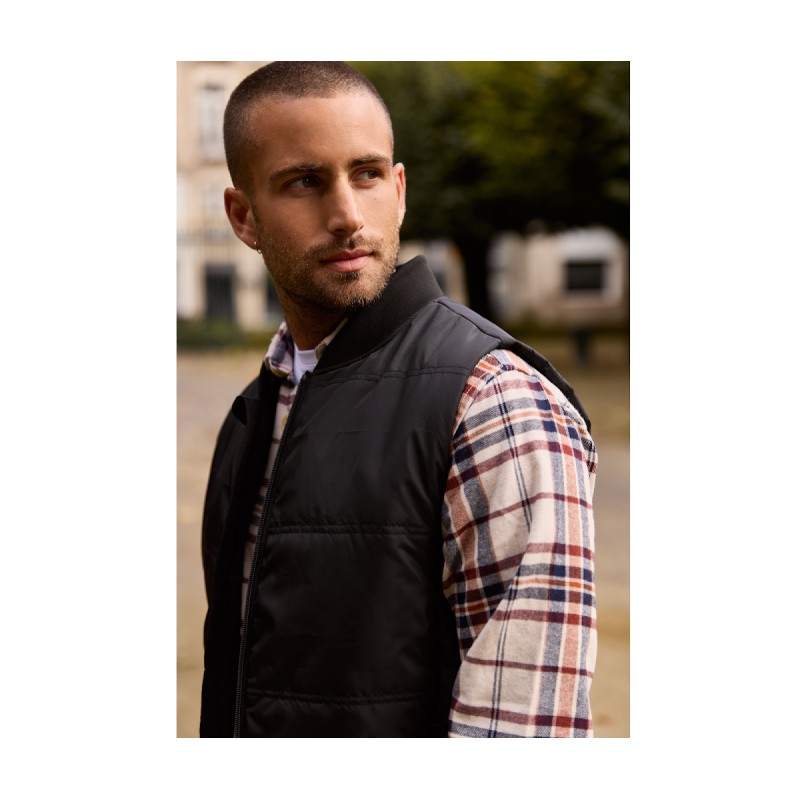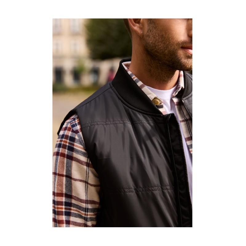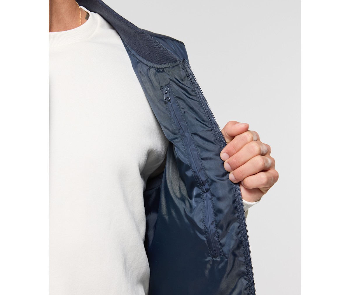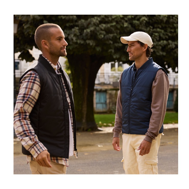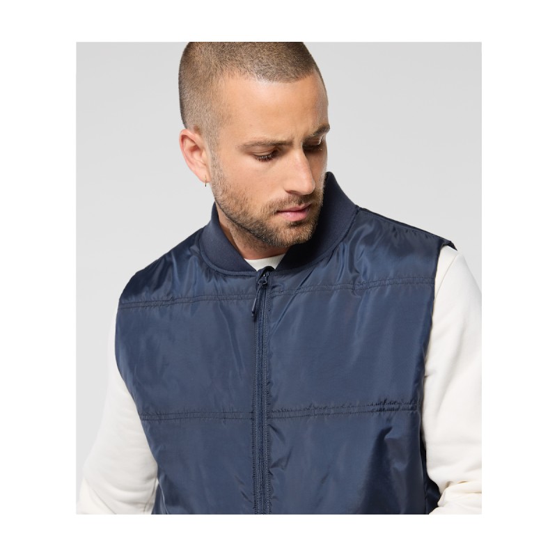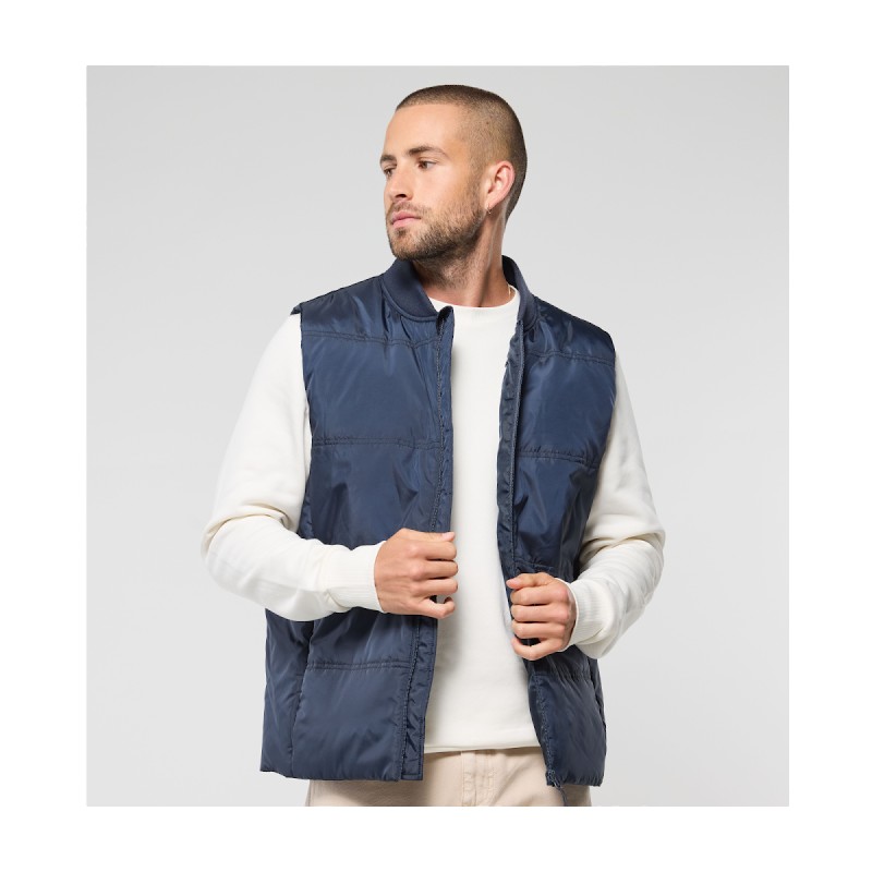 Col en bord côte. 2 poches avec zip caché. 1 poche intérieure zippée. Accès marquage. Ouatine recyclée.
