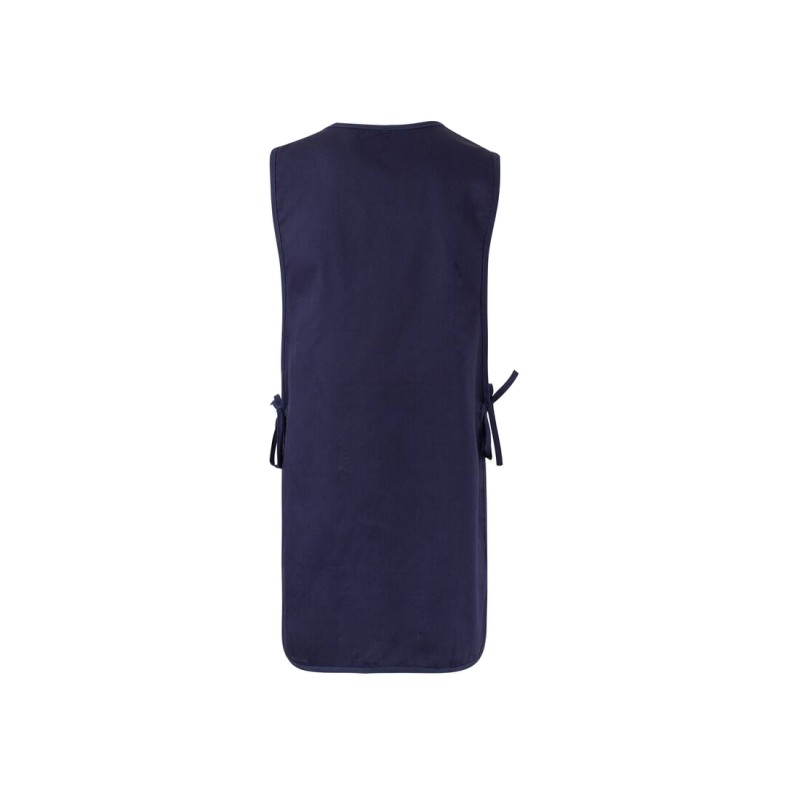 Coutures latérales. Réglable. 1 grande poche séparée en 2 par une couture. Mesures de la poche : 20,5x37cm.