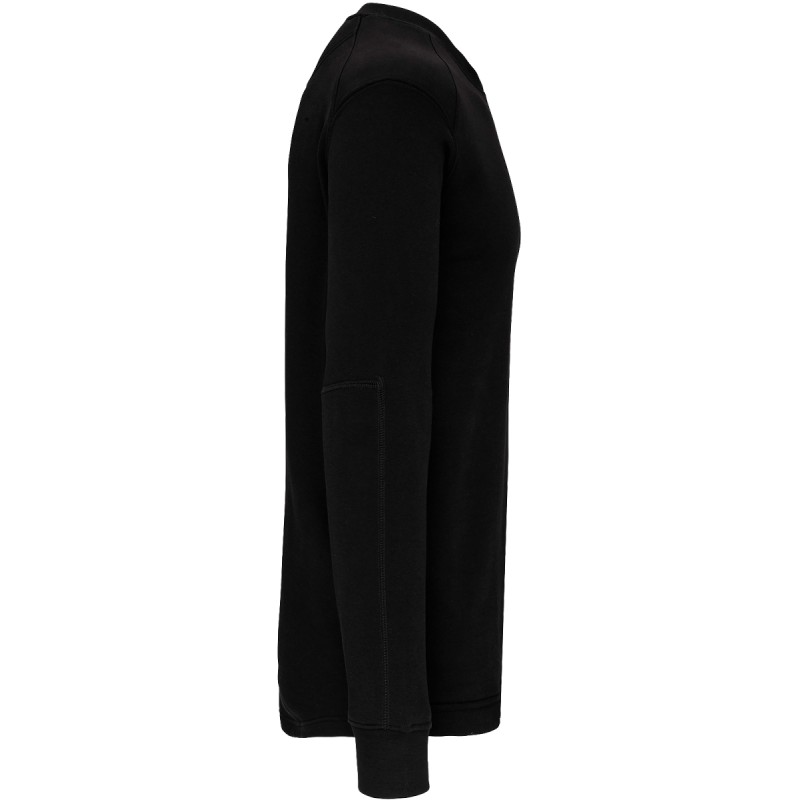 80% coton / 20% polyester. Molleton 3 fils avec traitement LSF (Low Shrinckage Fleece). Lavable à 60°C. Col rond et bas de manches en bord-côte. Poche zippée invisible côté droit. Renforts sur épaules et coudes pour plus de résistance. Porte-stylo sur manche gauche. Finition demi-lune au dos. Lien d'accrochage dans le col. Finition double aiguille au bas du vêtement et dos rallongé pour plus de confort. Certifié STANDARD 100 by OEKO-TEX®N° CQ 1007/7, IFTH.