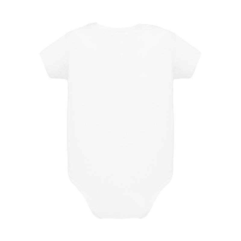 Boutons pression aux épaules et à l'entrejambe. Col en bords côte 1x1. Étiquette détachable.