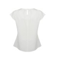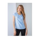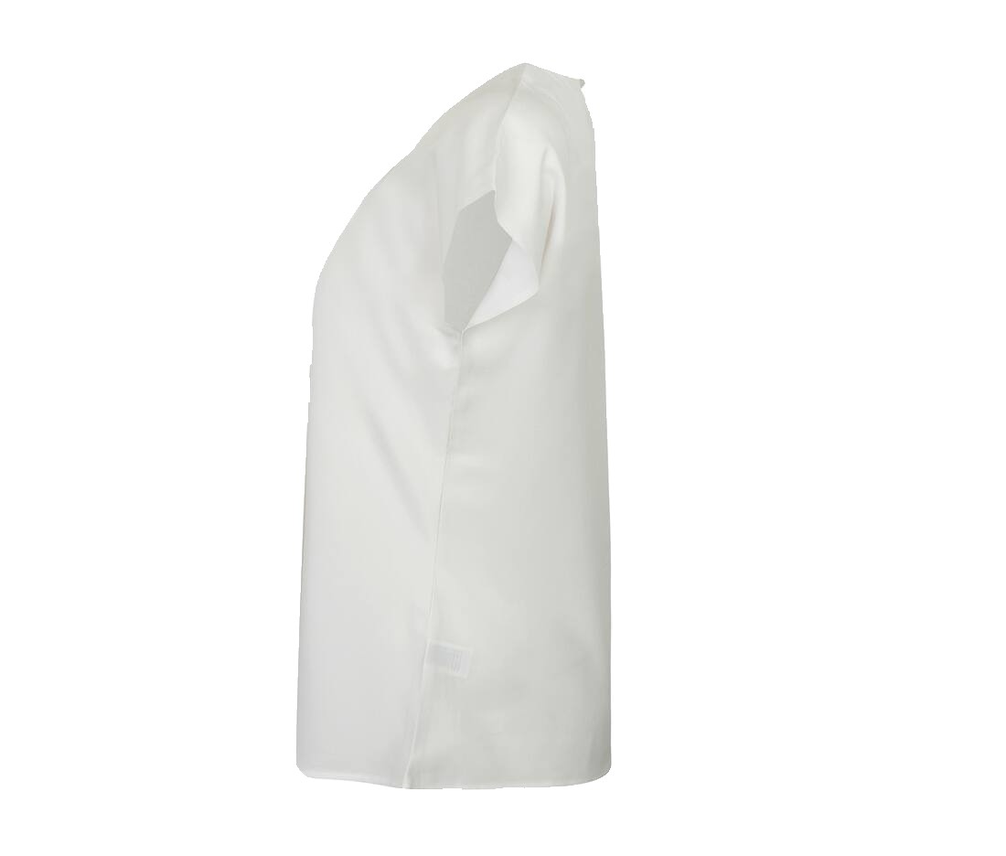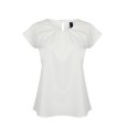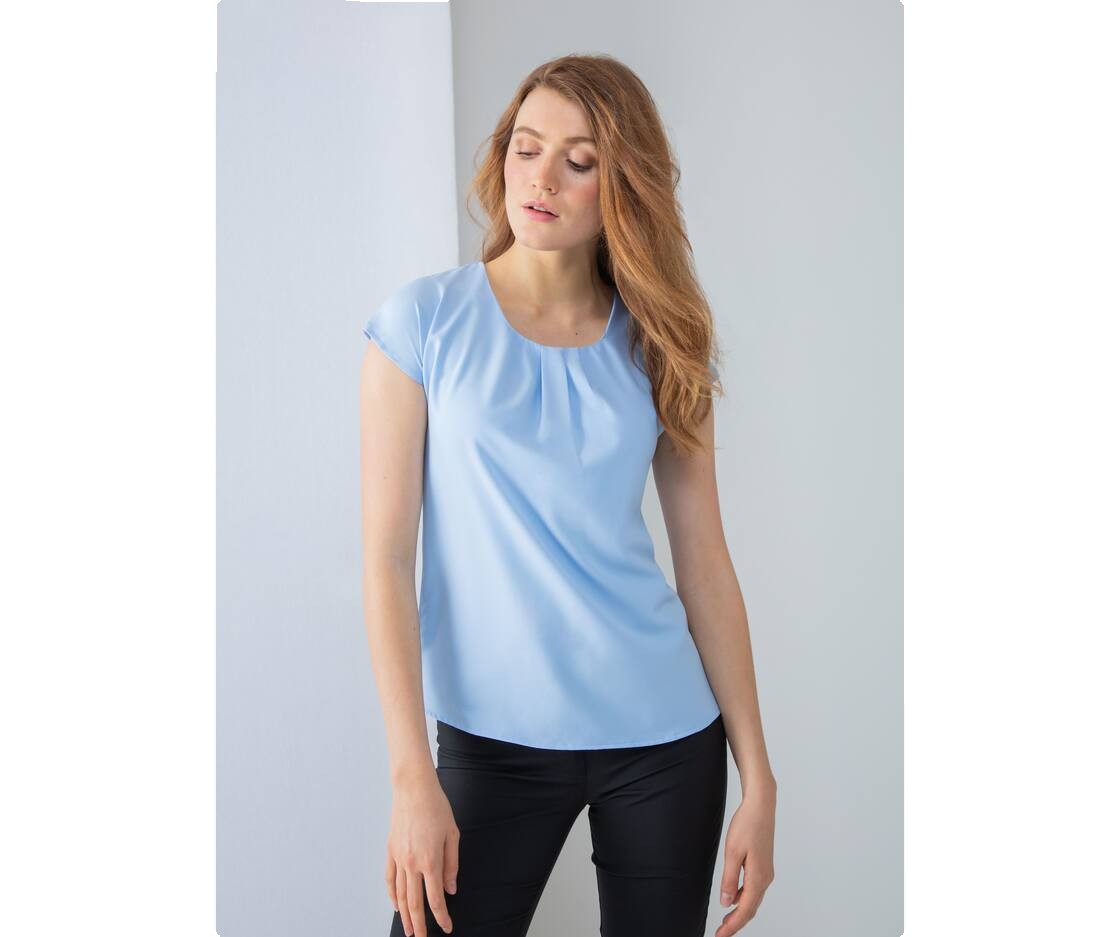 Plis sur le devant. Fermeture par bouton dans le dos. Ourlet arrondi.