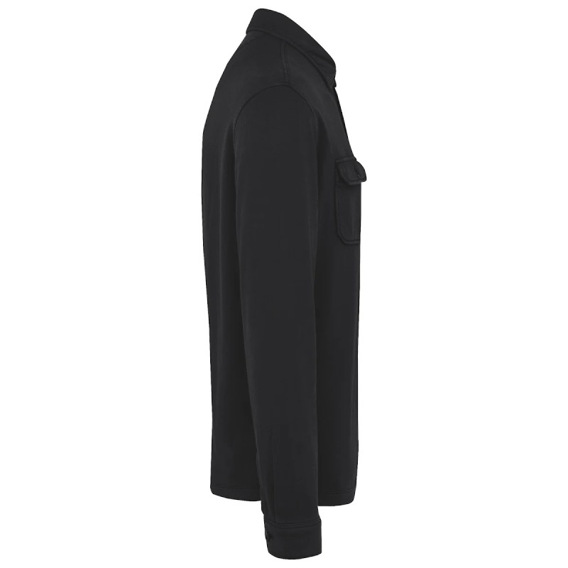 100% coton biologique. Coupe droite. Maille. Molleton gratté 3 fils. Aspect délavé. Patte de boutonnage avec boutons contrastés effet corne en plastique recyclé. Poignet boutonnée avec fente. Col avec pied de col. Finition encolure bande de propreté en chevrons ton sur ton. Deux poches plaquées avec rabat et bouton. Ourlet double surpiqûre bas de vêtement. Demi-lune au dos. Vêtement teint en pièce après montage : les couleurs peuvent légèrement varier d'un produit à un autre. Ce produit est susceptible de déteindre au contact avec des surfaces ou vêtements clairs. Certification en cours.
