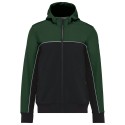96% polyester / 4% élasthanne. Tissu contrecollé 3 couches respirant 3000 g/m² /24 h et imperméable 5000 mm. Extérieur : 96% polyester / 4% élasthanne. Intermédiaire : membrane respirante et imperméable. Couche intérieure : micropolaire. Traitement BIONIC-FINISH® ECO (imperméabilisation à l'eau, sans fluor pour des performances optimales). Fermeture plastique zippée avec tire-zip ton sur ton. 2 poches zippées avec tire-zip sur le devant. Capuche 3 parties réglable à l'aide de stoppeurs insérés dans la couture. Bande de propreté intérieur col contrasté avec lien d'accrochage. Porte-stylo élastiqué 3 compartiments sur la manche gauche. Passepoil contrasté entre les parties du vêtement bicolores (corps et manches devant et dos). Bord-côte 2x2 doublé avec élasthanne au bas de manches et de vêtement. Etiquette de marque Tear Away.