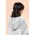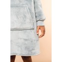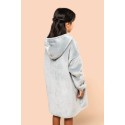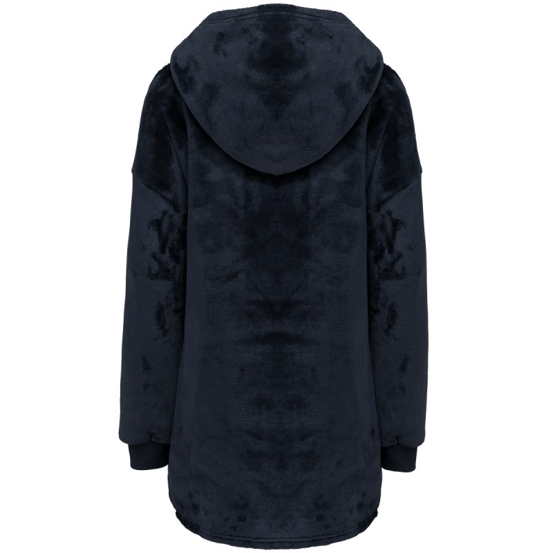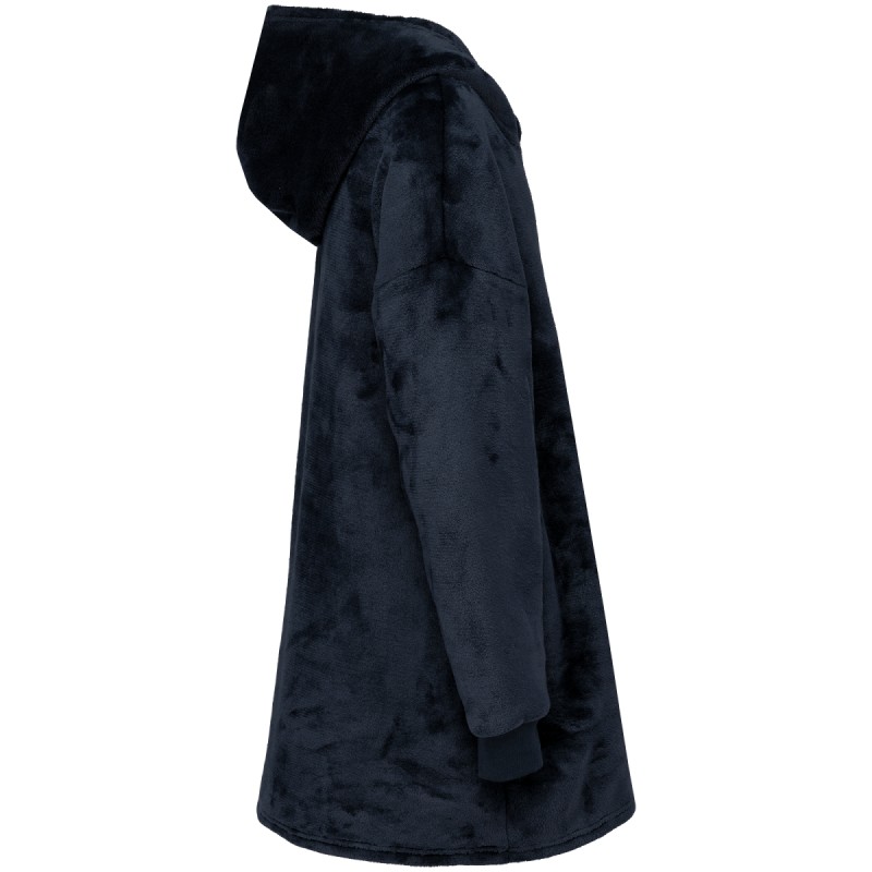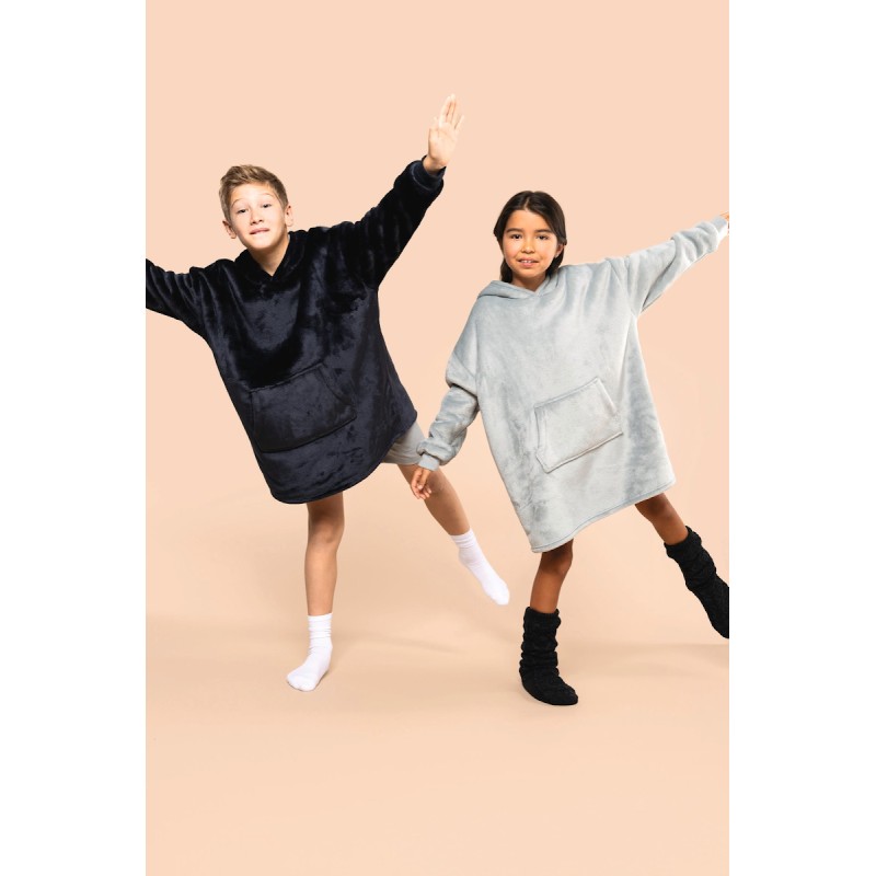 100% polyester. Coupe oversize aux épaules tombantes. Tissu double face, extérieur velours avec intérieur sherpa. Capuche croisée devant en deux panneaux avec finitions double surpiqûre. Manches longues avec poignet bord côte 1x1 doublé en finition tubulaire pour une meilleure finition. Présence d'élasthanne dans le bord côte bas de manche pour éviter que le poignet se déforme. Poche kangourou. Finition bas de vêtement double surpiqûre. Pas d'étiquette de marque au col, uniquement une puce de taille déchirable pour faciliter la personnalisation.