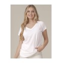 Col V en bords côte 1x1. Manches roulées. Ourlet arrondi.