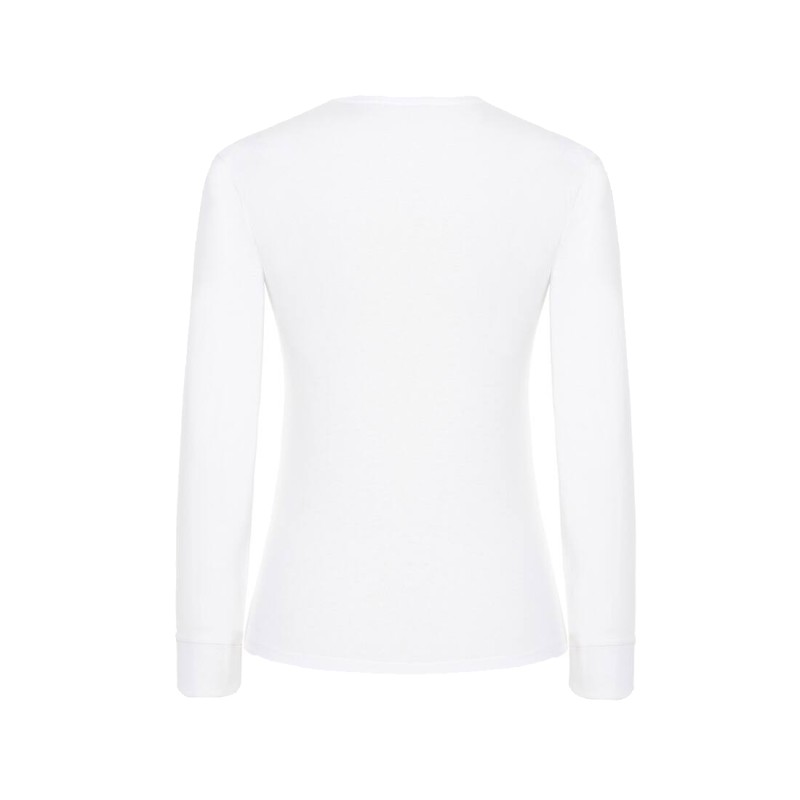 Coupe tubulaire. Double surpiqûre au cou, épaules et taille. Col avec bord côte élasthanne.