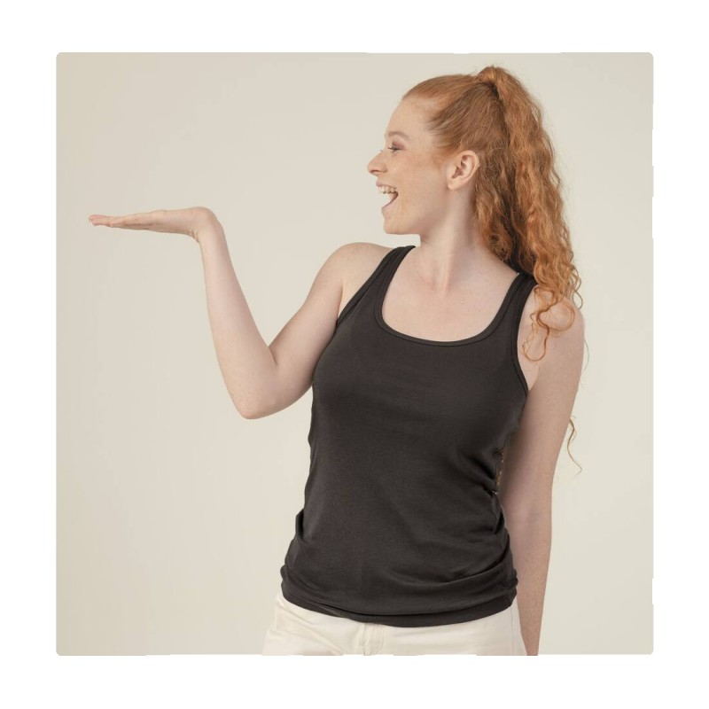 Coupe ajustée. Étiquette amovible. Bords côte 1x1.