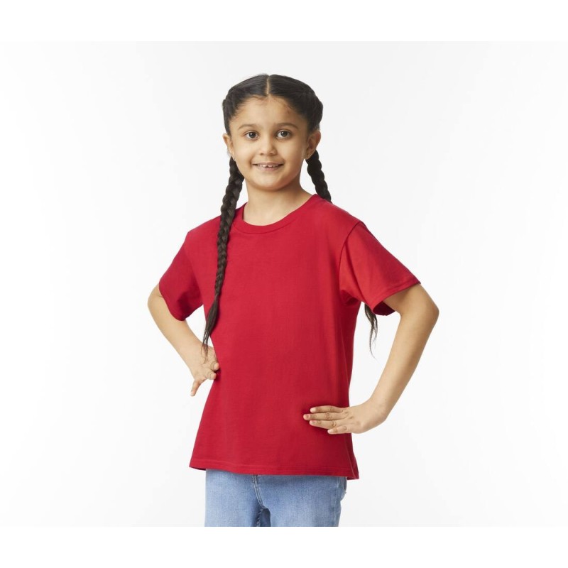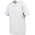 100% coton ring spun pré-rétréci Ring-Spun "Softstyle" (sauf RS Sport Grey : 90% coton / 10% polyester). Bande de propreté. Maille jersey. Double couture aux manches et au bas du vêtement. Conception tubulaire pour les tailles 7/8, 9/11 et 12/14 ans et coutures sur les côtés pour les tailles 3/4 et 5/6 ans. Coupe européenne.