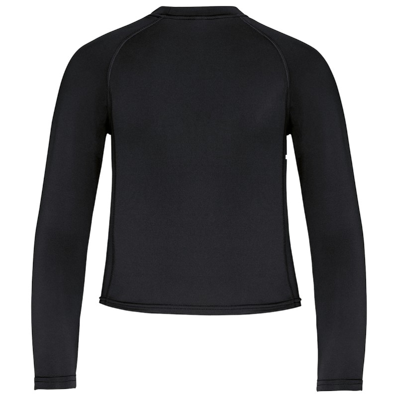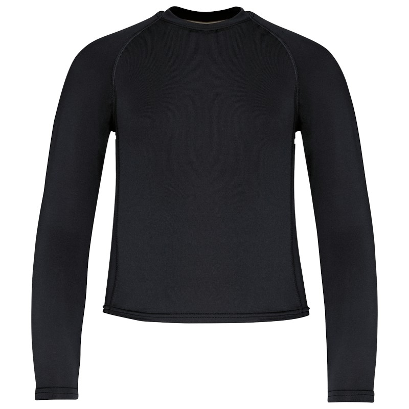 88% polyester / 12% élasthanne. Encolure ronde. Points de recouvrement ton sur ton. Finition double aiguille bas de manche et de vêtement.