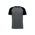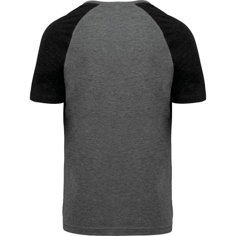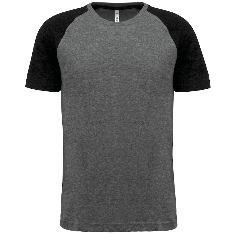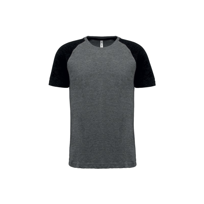 50% coton / 38% polyester / 12% viscose. Encolure ronde. Bande de propreté encolure et manches contrastés. Finition double aiguille au bas de manche et de vêtement.