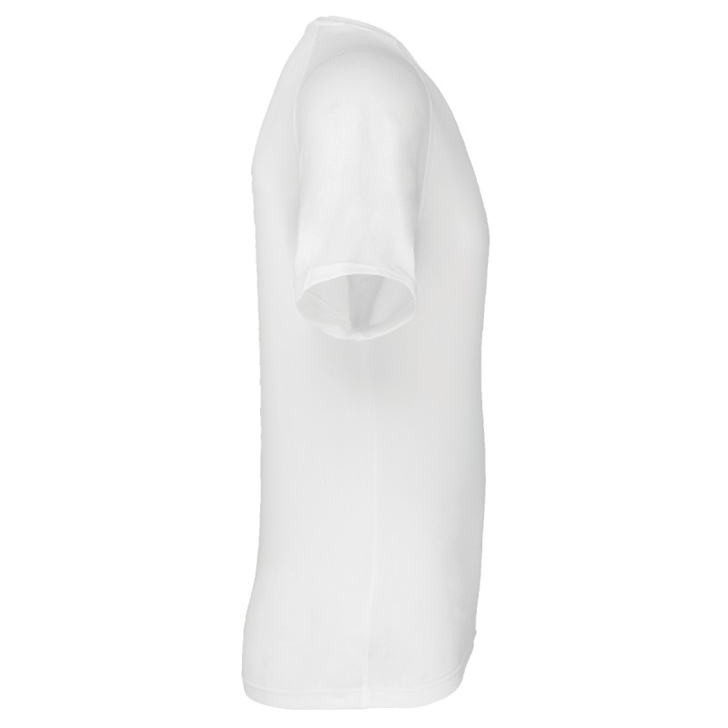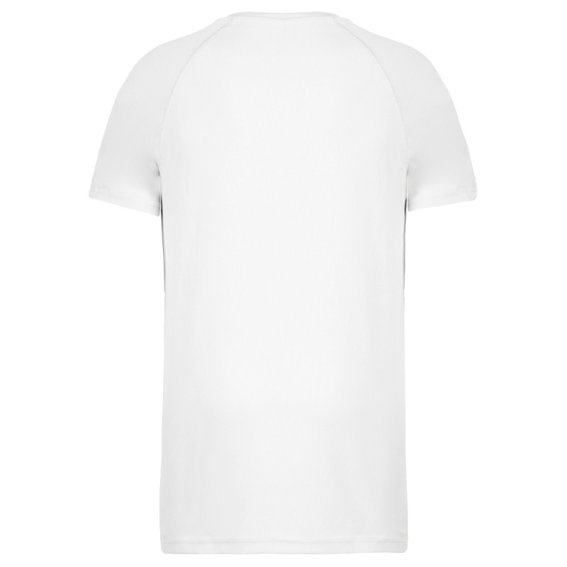 100% polyester. Tissu léger à séchage rapide. Encolure ronde avec bande de propreté. Manches raglan avec points de recouvrement. Finition double aiguille à l'encolure, bas de manche et de vêtement. Certifié STANDARD 100 by OEKO-TEX® N° CQ 1007/7, IFTH.