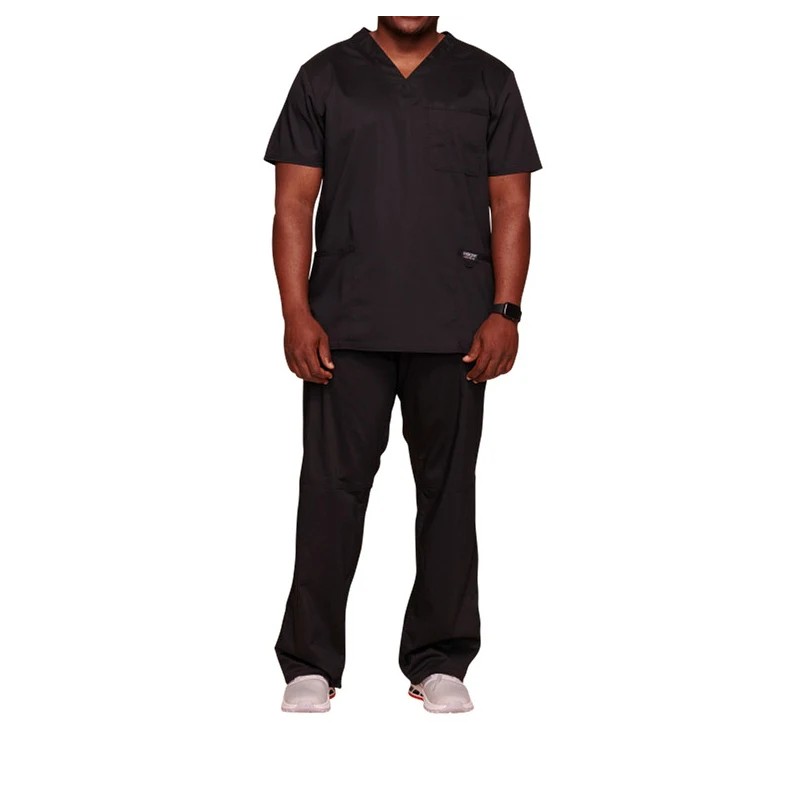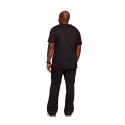 78% polyester / 20% viscose / 2% élasthanne. Tissu sergé. Coupe masculine. Poche poitrine avec fente pour stylo. Deux poches plaquées. Etiquettes avec logo et boucle élastique. Empiècement arrière. Ventilations latérales.