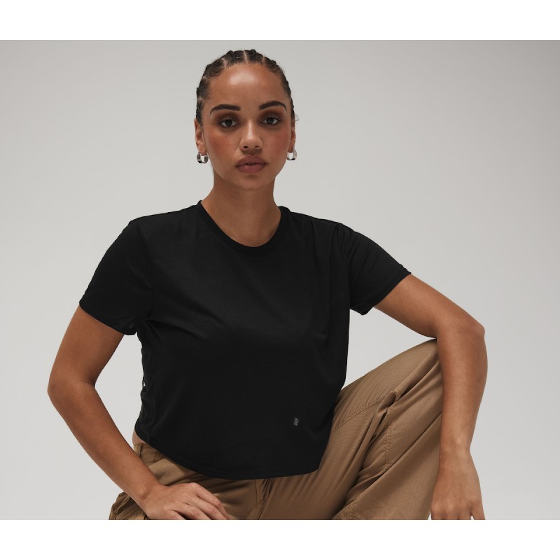 Coutures latérales. Coupe décontractée et flottante. Modèle court. Étiquette détachable.