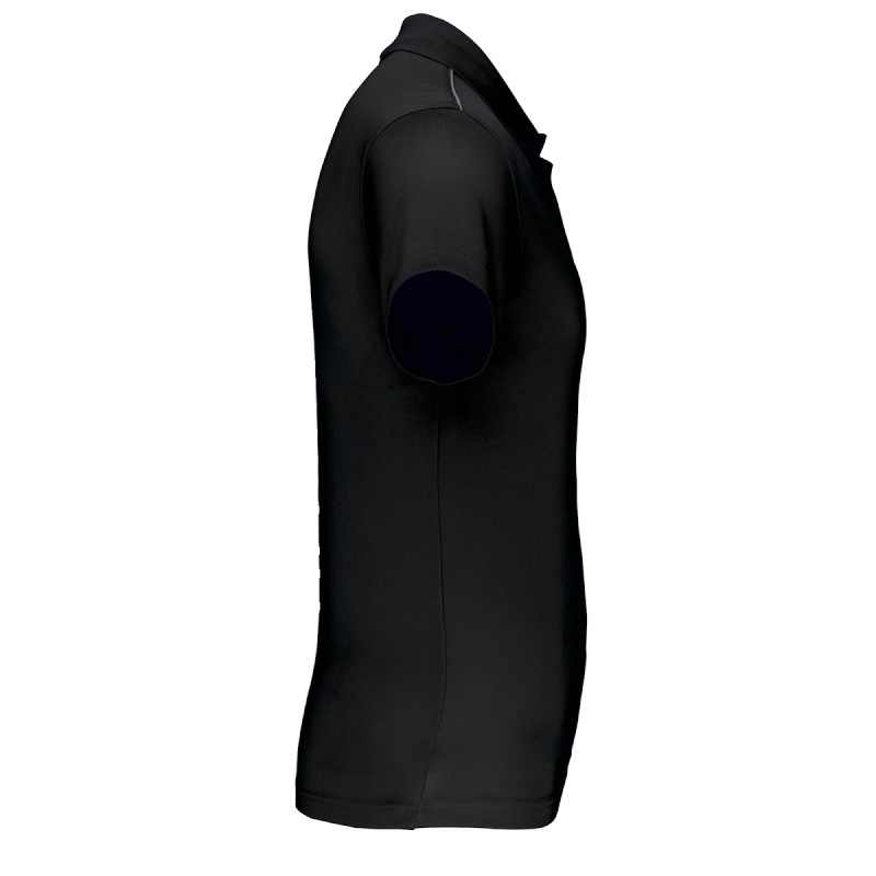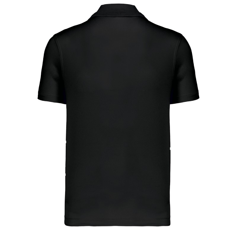 100% polyester interlock. Tissu à séchage rapide. Col en bord-côte. Patte de boutonnage 3 boutons. Bande de propreté contrastée au col et sur fentes latérales. Passepoil contrasté aux épaules. Finition double aiguille bas de manches et de vêtement. Certifié STANDARD 100 by OEKO-TEX®N° CQ1007/7, IFTH.