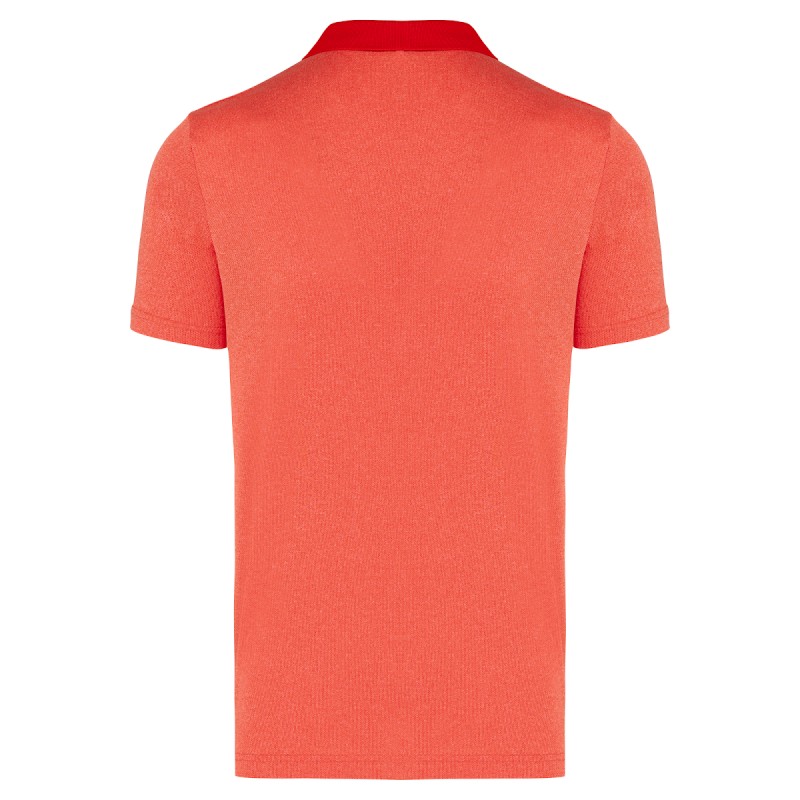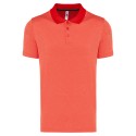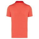 100% polyester. Col en bord-côte. Patte 3 boutons. Bande de propreté encolure et fentes côté contrastées. Finition double aiguille bas de manches et de vêtement.
