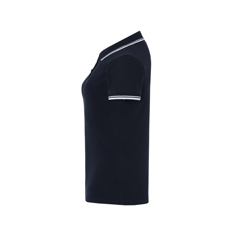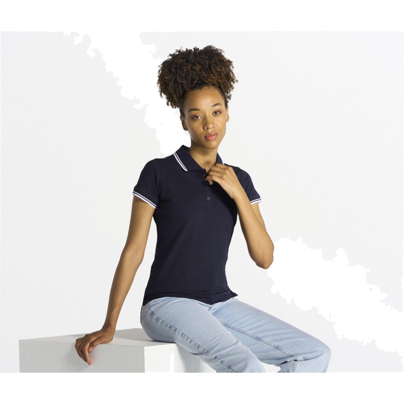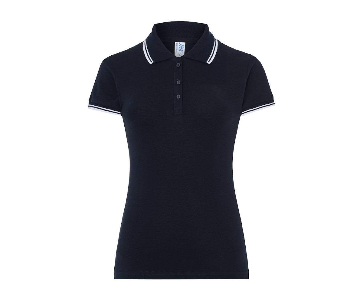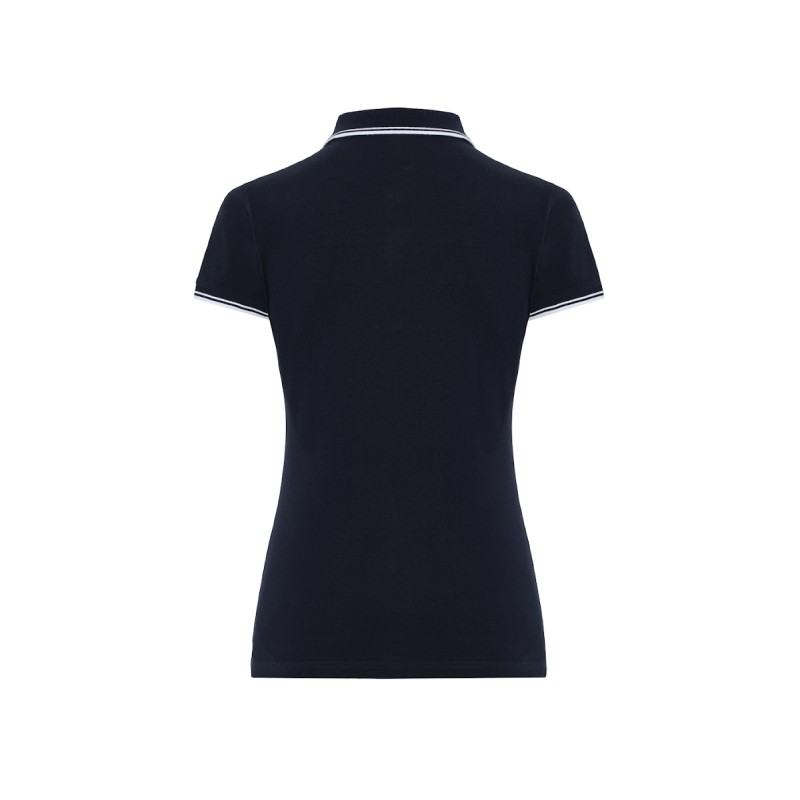 Polo piqué, ajusté. 3 boutons ton sur ton. Fentes latérales. Col et bas de manches côté 1x1.