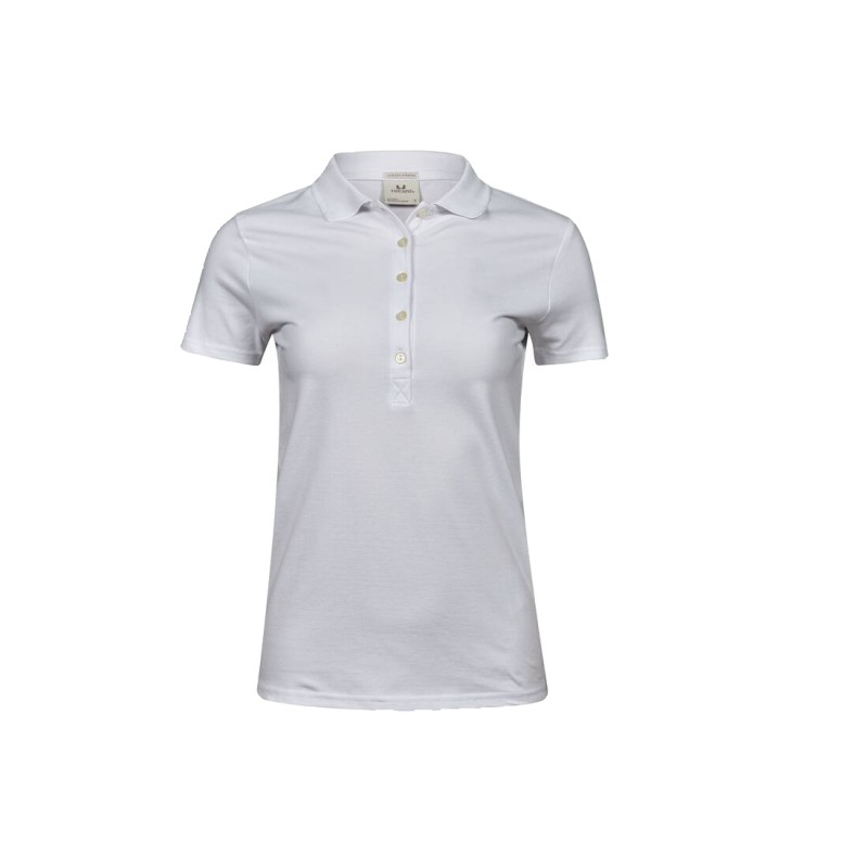 Maille piquée mini. Coupe ajustée. Col à côte tricoté avec Lycra®.