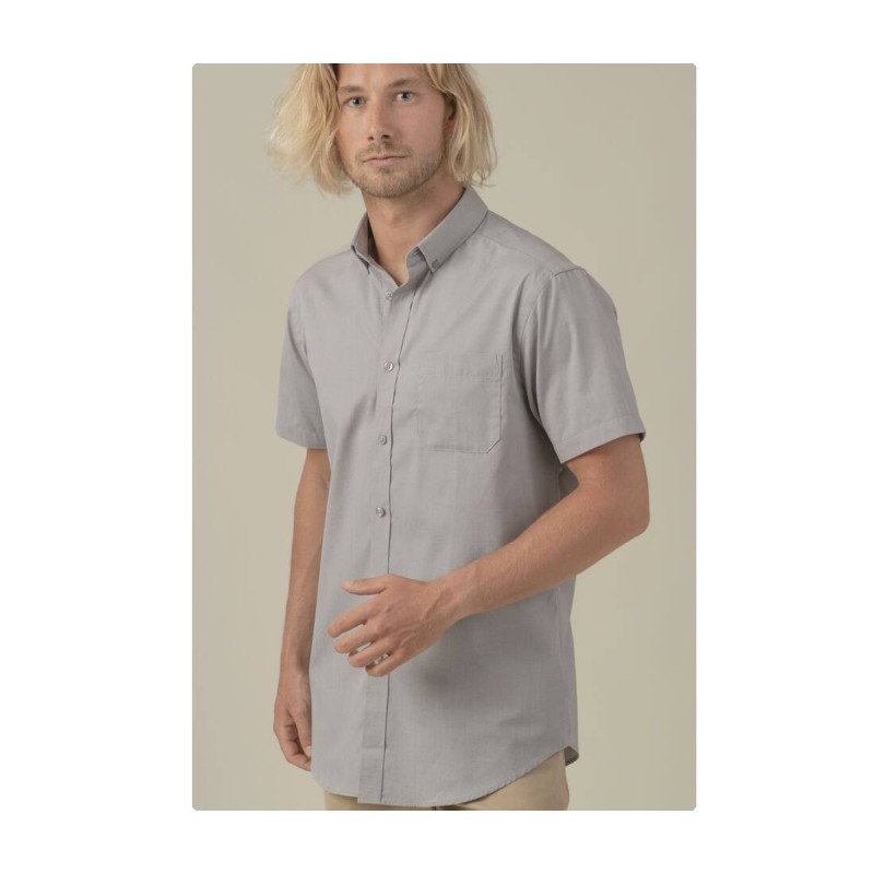 Chemise manches courtes. Col boutonné. Poche côté coeur.