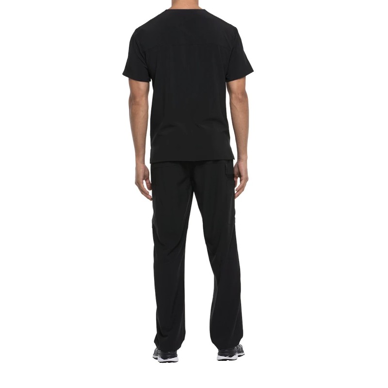 95% polyester / 5% élasthanne. Coupe masculine. Quatre poches : poches plaquées, poche poitrine avec fente pour stylo, poche accessoire. Boucles d'instruments en ruban sergé utilitaire sur la poche droite. Etiquette tissée signature ton sur ton. Bande sergé avec logo signature à l'intérieur du col. Ventilations latérales.