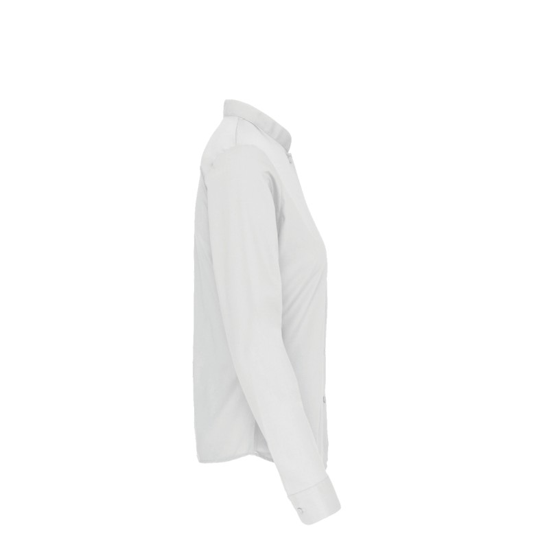 65% polyester / 35% coton popeline. Entretien facile. Col mao non boutonné. Boutons ton sur ton. Poche poitrine côté gauche en V. Poignet réglable à angles arrondis avec patte de manche indéchirable. 1 bouton de rappel. Bas arrondi.