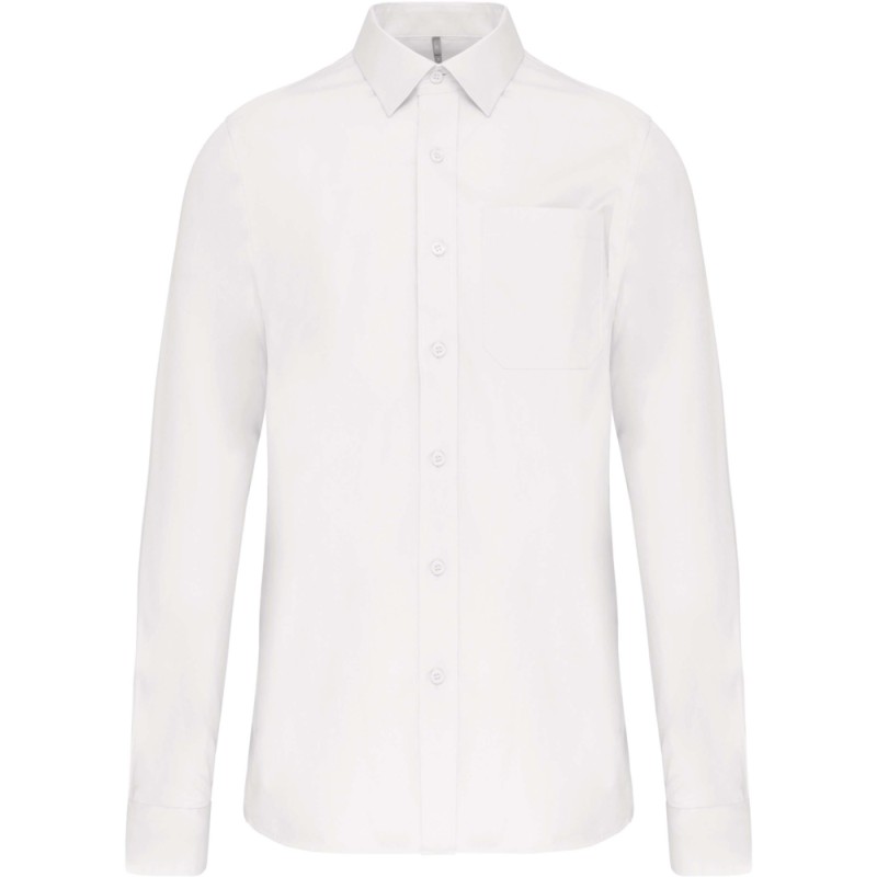 100% coton popeline. Entretien facile (traitement Easy care). Pointe de col baleinée. Boutons ton sur ton. Poche poitrine côté gauche à angles abattus. Empiècement dos double avec 2 plis d'aisance. Finition coutures rabattues. Poignet réglable à angles arrondis avec patte de manche capucin boutonnée. 2 boutons de rappel. Bas arrondi.
