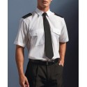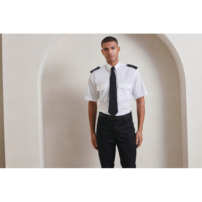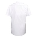 65% polyester / 35% coton, popeline simple. 2 poches avant boutonnées et emplacement stylo sur côté gauche. Galons non fournis. Entretien facile. Tour de col en cm entre parenthèses.