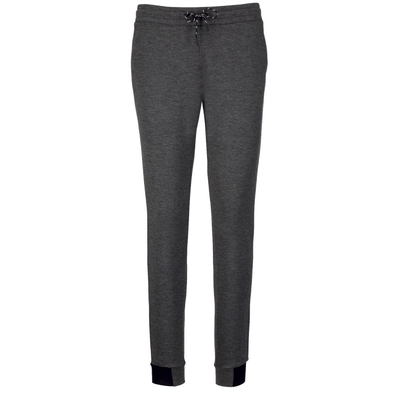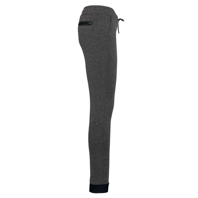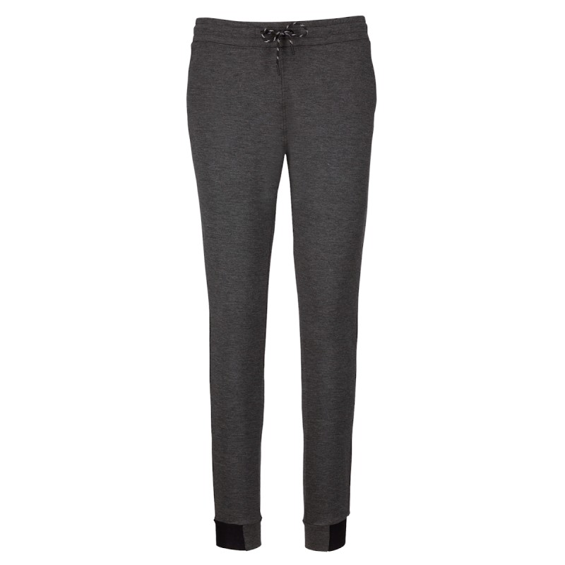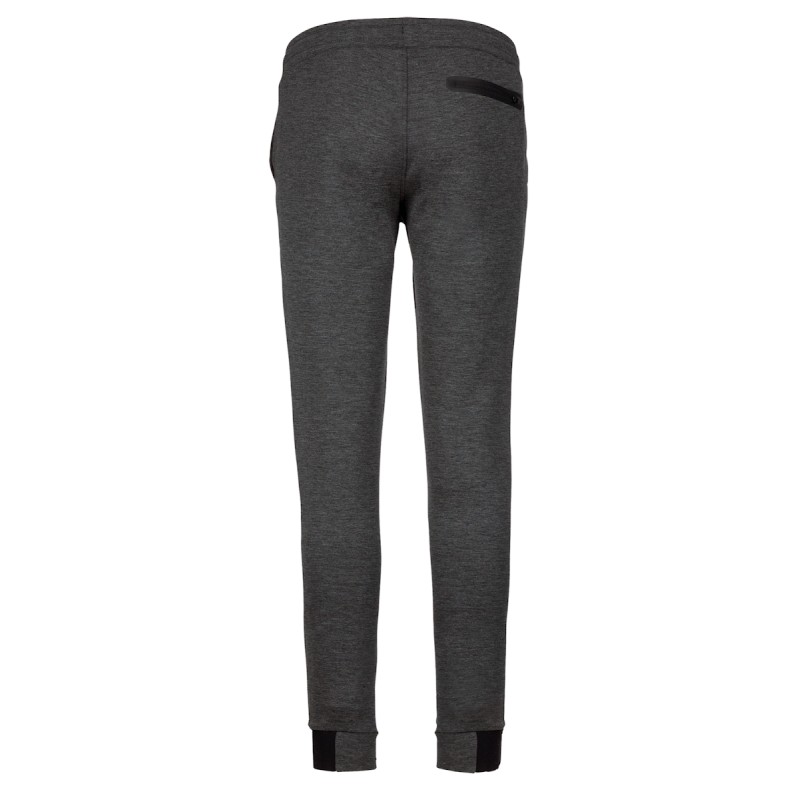 94% polyester/ 6% élasthanne (79% polyester/ 15% viscose/ 6% élasthanne pour coloris chiné). Matière ultra confortable. Ceinture élastiquée avec cordon de serrage bicolore finition embout plastique. 2 poches devant doublure jersey 65% polyester/ 35% viscose  et 1 poche arrière zippée finition thermosoudée. Coupe moderne et ajustée. Bas de jambes resserré avec une partie élastiquée contrastée Black sur tous les coloris et Dark Grey sur le Ash Heather.