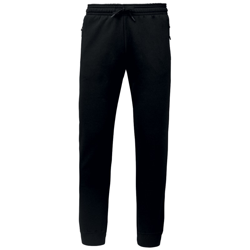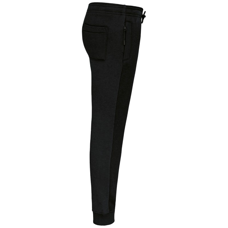 65% polyester / 35% coton. Molleton gratté. Ceinture élastiquée avec cordon de serrage ton sur ton. Pour plus de confort, finition intérieur taille par bande élastique au touché doux, contrastée avec liseré fluorescent. 2 poches côtés fantaisie avec fermeture à glissière, sac de poche en maille filet et une poche téléphone contrastée fluorescente. 1 poche plaquée arrière. Bas de jambe resserré par un bord-côte 2 x 2. Certifié STANDARD 100 by OEKO-TEX®N° CQ1007/7, IFTH.