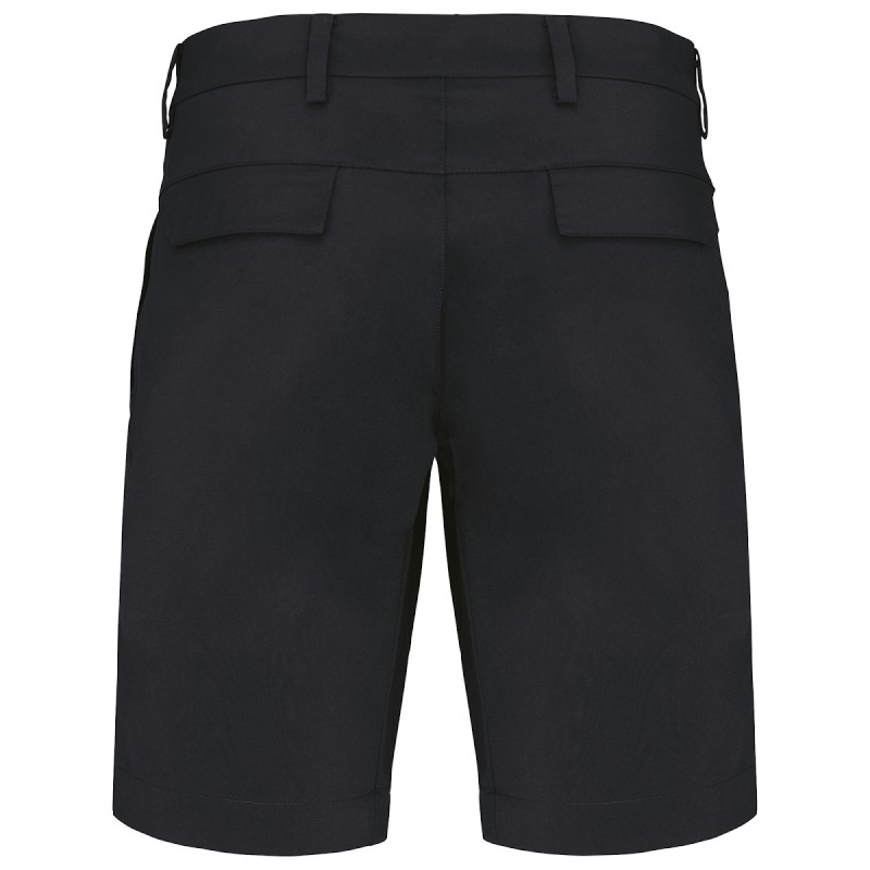 96% polyester / 4% élasthanne. Matière souple et déperlante pour un confort optimal. Coupe ajustée. Ceinture avec passants, 2 poches profondes côtés et 2 poches arrière passepoilées avec rabat.
