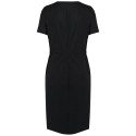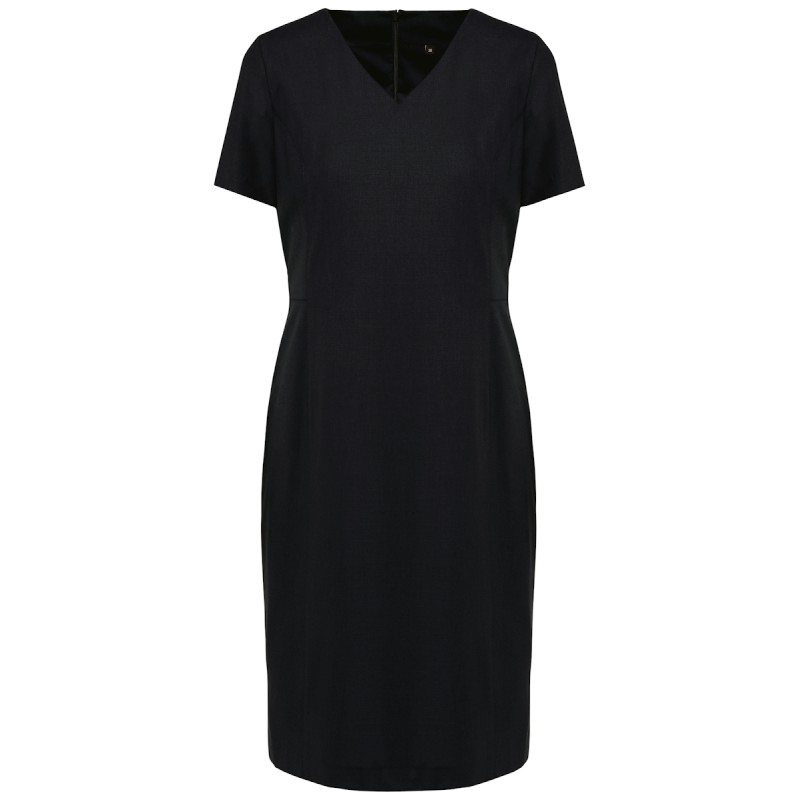 50% polyester / 23% viscose / 22% laine / 5% élasthanne. Doublure 100% polyester stretch uniquement sur le corps. Découpe princesse avec empiècement à piqûre nervure qui aplati la couture et la renforce. Encolure en V avec finition intérieure doublée. Fermeture zippée invisible dans le dos. 2 pinces taille dans le dos. Fente d'aisance au bas du dos. Doublure volante avec fente. Pas d'étiquette de marque, uniquement une puce de taille pour faciliter la personnalisation.