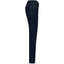 99% coton denim / 1% élasthanne. 10,5 oz. Fermeture zippée avec un bouton métal, rivets en métal de la même couleur Old Bras. Deux poches devant dont une avec poche ticket. 2 poches plaquées arrière. Coutures contrastées bordeaux. Ceinture avec passants et intérieur bande contrastée à l'arrière. Coupe straight. Ce jean est lavé avec un traitement spécifique impliquant des variations de couleurs d'une pièce à l'autre. Au fil des lavages, il va se patiner. En contact avec des surfaces claires, Il peut déteindre. À laver séparément. Pas d'étiquette de marque, uniquement une puce de taille pour faciliter la personnalisation.