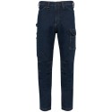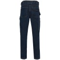 99% coton / 1% élasthanne. Toile denim. Lavable à 60°C. Coupe ajustée. Fermeture boutonnée avec cache-boutons et zip métal. Devant : 2 poches ouverture en biais. Côté gauche : poche couture renforcée à rabat avec fermeture auto-agrippante + sur-poche à 3 compartiments dont 1 avec passe-stylo. Côté droit : passe-marteau, poche mètre + surpoche avec fermeture auto-agrippante. Dos : 2 poches plaquées avec coutures renforcées dont une à rabat avec bande auto-agrippante. Ceinture arrondie dans le dos avec large bande élastique intérieure antiglisse pour un maintien optimal. Boucle orange intérieur milieu dos. Passants avec coutures renforcées dont un large milieu dos et 1 anneau plastique devant. Pinces d'aisance aux genoux pour plus de confort. Soufflet renforcé à l'entrejambe pour plus de résistance et une parfaite liberté de mouvement. Triple surpiqûres coutures côtés, intérieur jambe et fourche dos. Finition double aiguille au bas de jambe. Etiquette de marque Tear Away.