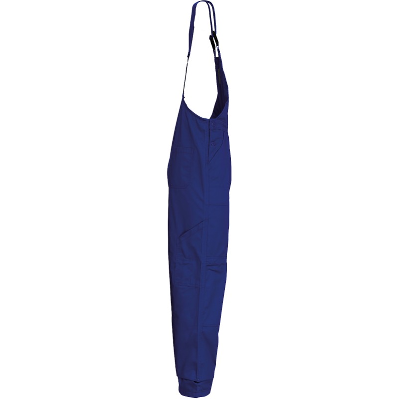 65% polyester / 35% coton. Tissu sergé. Lavable à 60°C. 5 poches avant : 2 poches plaquées + 1 grande poche frontale zippée avec 1 poche stylo. 1 poche plaquée arrière. Bretelles réglables par une boucle plastique. Large élastique au dos pour une plus grande liberté de mouvement. Braguette avec fermeture à glissière. Ouverture côté par patte double boutonnage. 1 étiquette nom à l'intérieur. Coutures renforcées + renforts genoux. Lien d'accrochage.