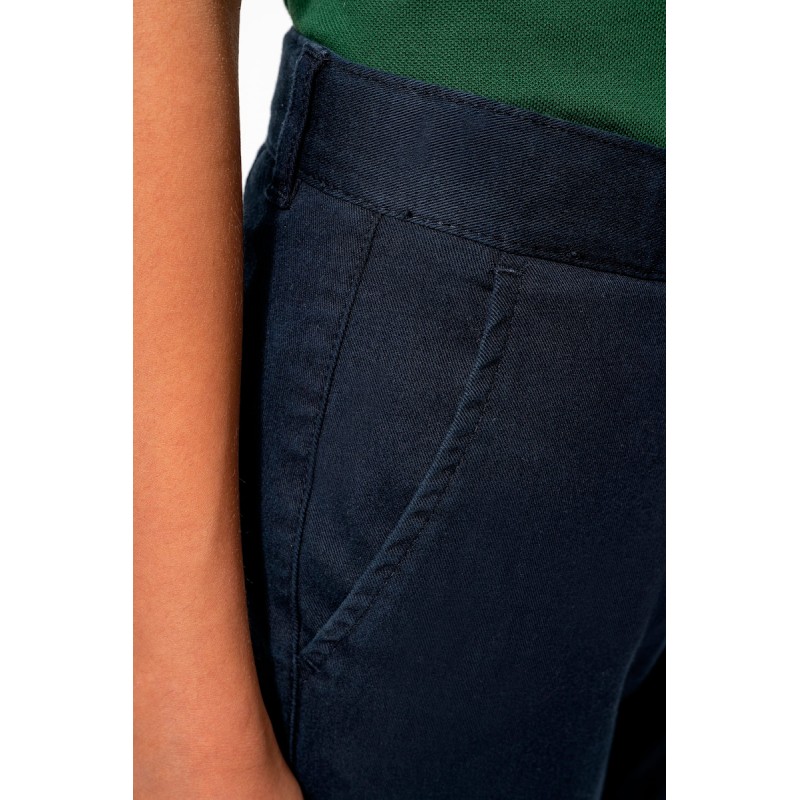 98% coton / 2% élasthanne. Lavé aux enzymes. Ceinture avec passants. Braguette avec bouton et zip en métal. Deux poches devant avec surpiqûre. Deux poches passepoilées au dos avec piqûre nervure. Ceinture intérieure élastiquée et ajustable. Bride intérieure en chevrons ton sur ton. Surpiqûres entrejambe, fourche devant et dos pour plus de renfort. Finition bas de jambe simple surpiqûre. Pas d'étiquette de marque, uniquement une puce de taille déchirable pour faciliter la personnalisation.