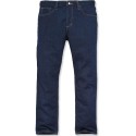 Denim 85 % coton / 14 % polyester / 1 % elasthanne. Coupe cintrée 5 poches. Hauteur de taille moyenne/basse. 2 poches avant avec une poche ticket et renfort rivets. 2 poches arrières plaquées. Longueur d'entrejambe : 32cm.