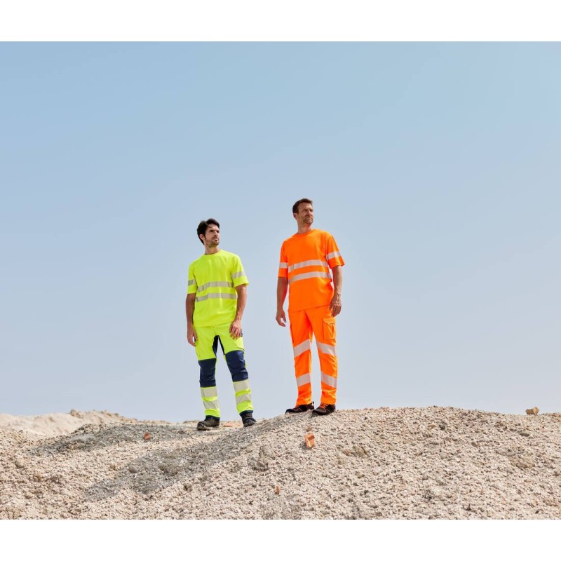 Fermeture à bouton avec braguette zippée. 2 bandes réfléchissantes sur le bas des jambes. Certifié EN20471:2013 Class2.