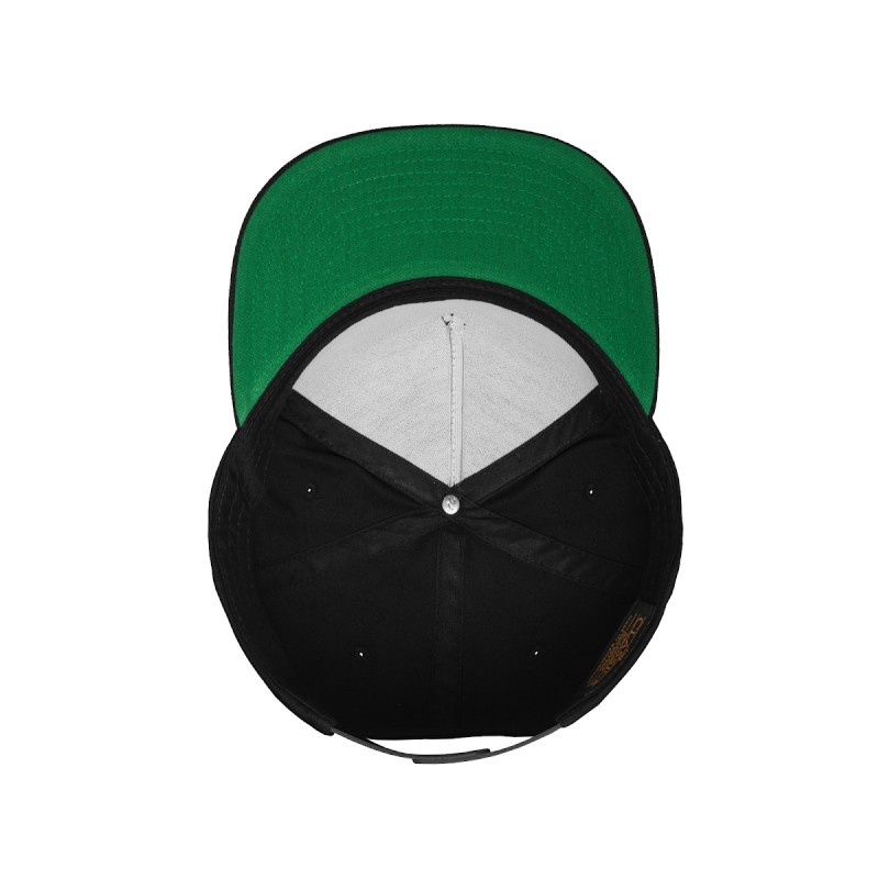 Forme classique | Fermeture pression ton-sur-ton | Buckram rigide | Face inférieure de la visière en vert (Ton-sur-ton à double couleurs: Black/Black)