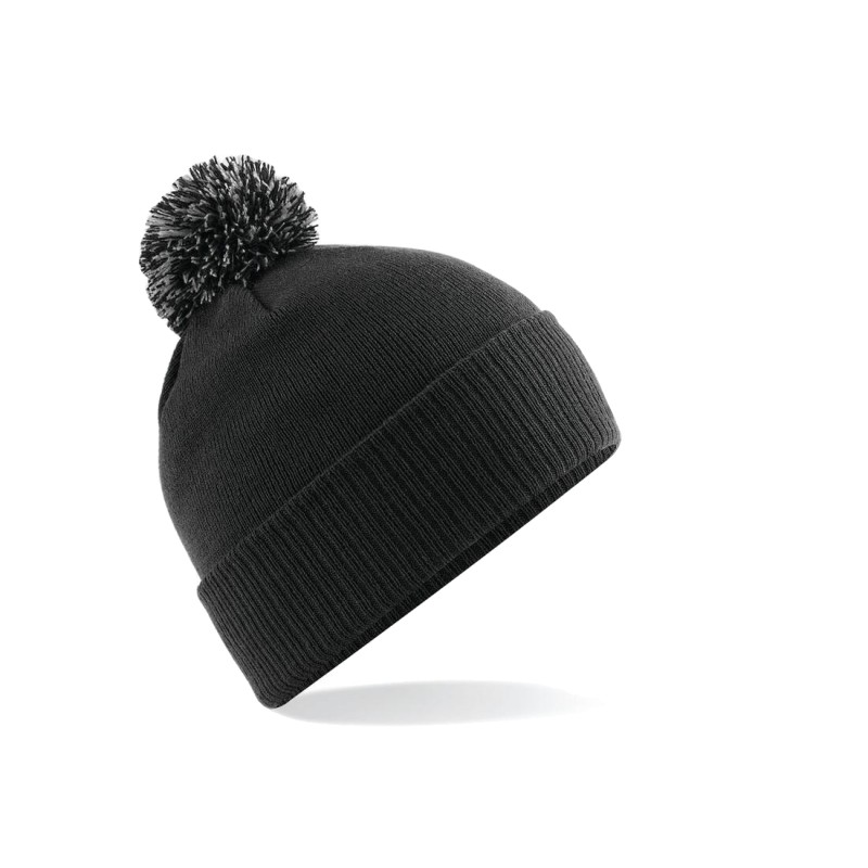 100% Soft-Touch Acrylique | Tricot double couche | Style Dual - Poignets ou larges bords | Pompon bicolore | Manchette côtelée | Étiquette détachable pour faciliter la modification de la marque