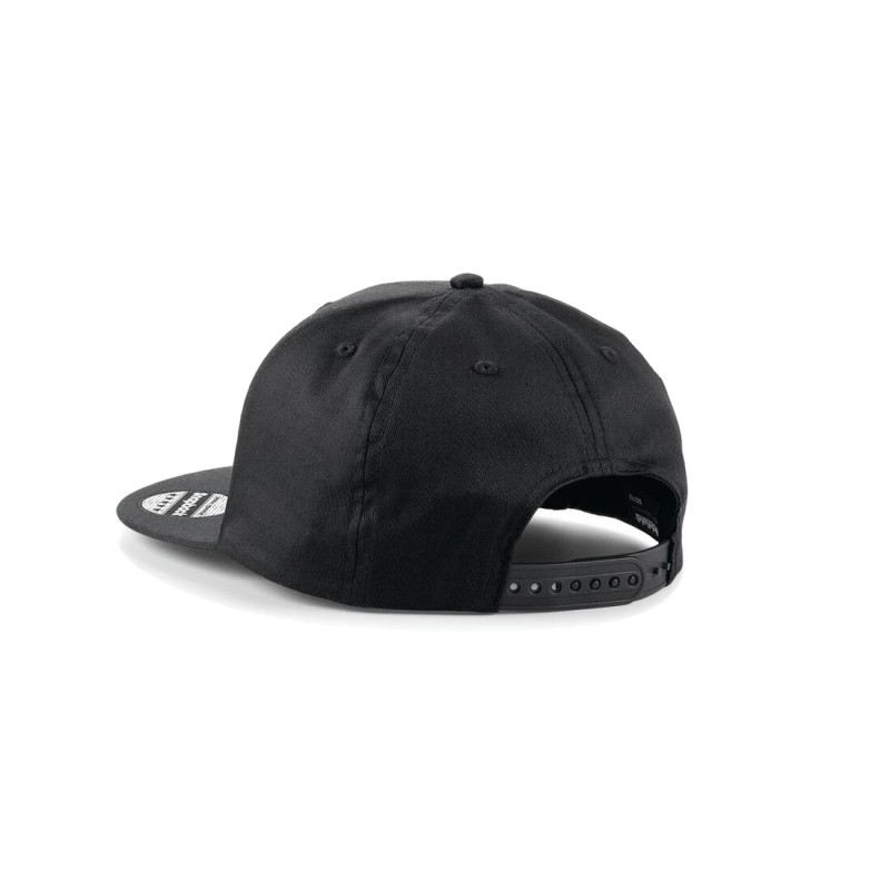 Fermeture en matière plastique à taille ajustable | Sommet plat | 100% Coton Twill - 220gsm | Autocollant authentique sur la visière | Étiquette détachable pour faciliter la modification de la marque | Trous d'aération brodés | 5 panneaux design