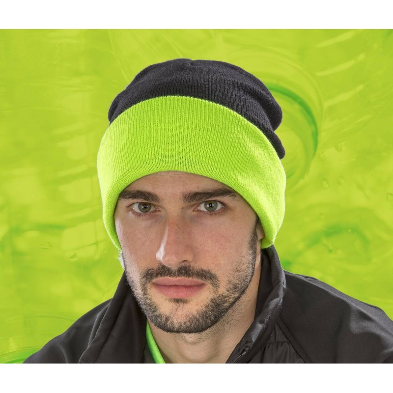 50 % polyester recyclé / 50 % acrylique doux | Taille : 21 × 22 cm | Manchette profonde de couleur contrastée | Double épaisseur | Taille normale | Maille douce | Prêt à être personnalisé | Fabriqué à partir de fils de filaments durables de la plus haute qualité utilisant exclusivement des bouteilles de plastique recyclées en PET usagé | Lavage facile, séchage rapide | Fabriqué à partir de 1 bouteille en plastique (1 litre)