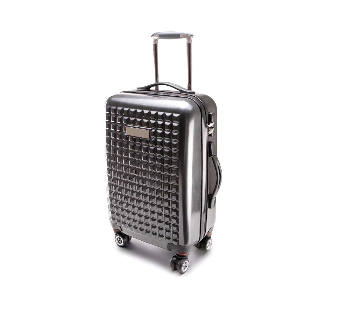 Valise trolley grand volume en polycarbonate très haute qualité, 4 roues doubles, design exclusif, divers rangements à l'intérieur, fermeture sur le côté cadenassée. Possibilité de personnalisation sur plaque en métal amovible.